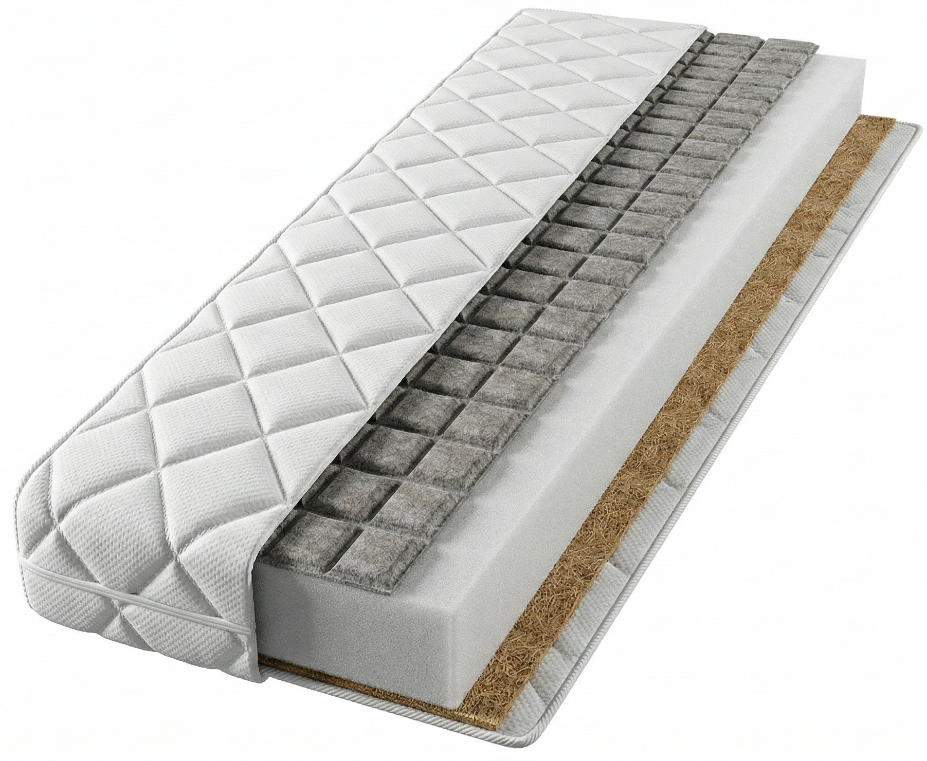 - Warstwa 3 – Flizelina: Wzmacnia pokrowiec i chroni wkład materaca.